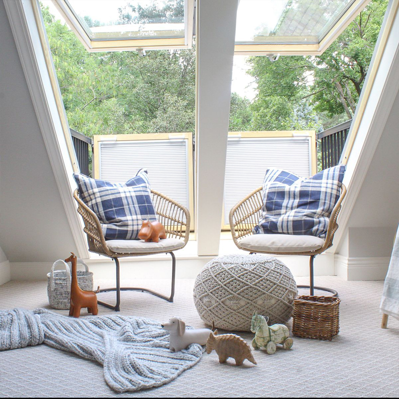Thiết kế này giúp mang thiên nhiên vào không gian sống, tạo cảm giác rộng rãi và thoáng đãng cho phòng áp mái.