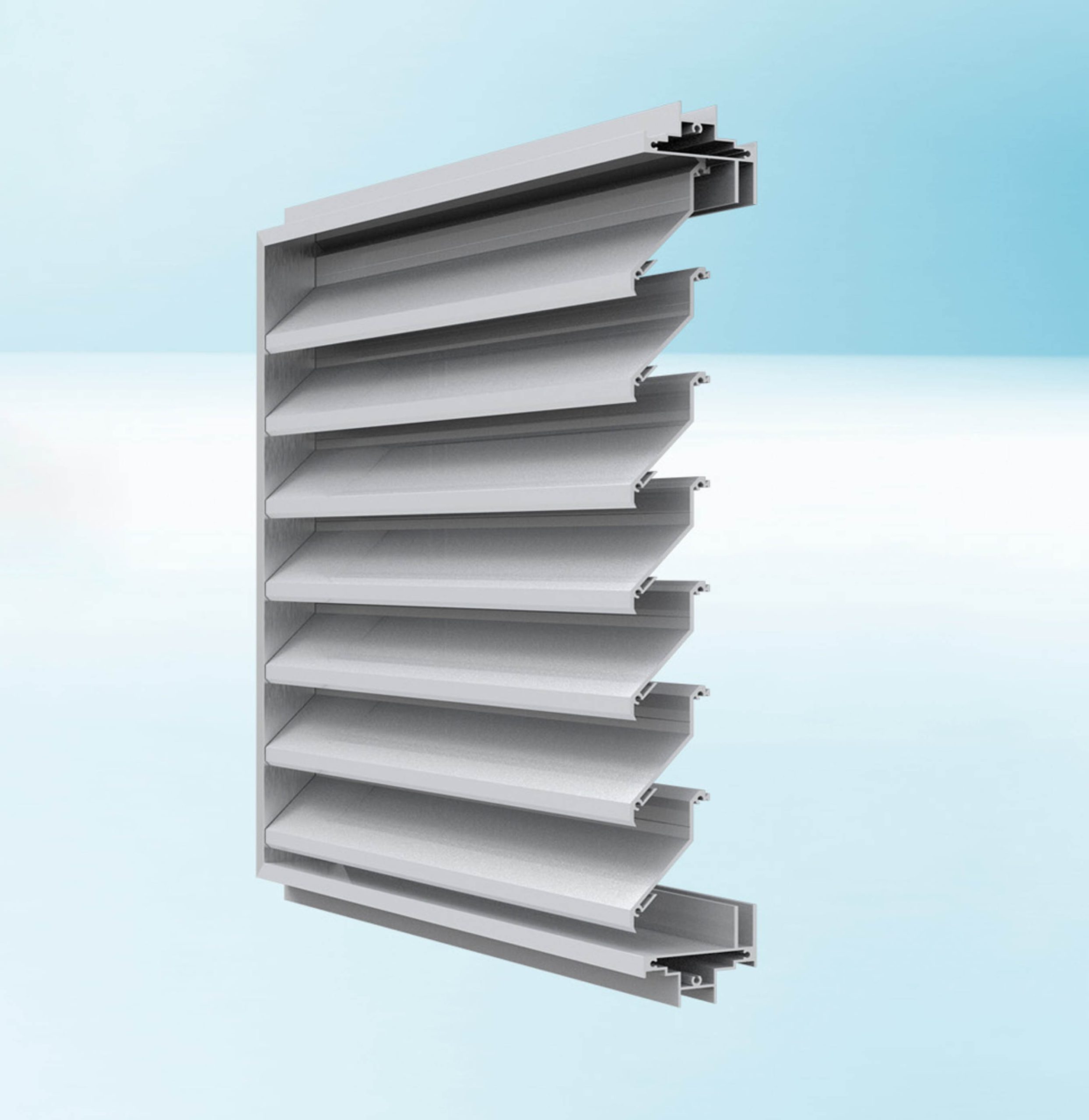 Louver tự động là hệ lam chắn nắng sử dụng các thanh nhôm (lam) được lắp song song trên khung và có khả năng điều chỉnh góc nghiêng bằng motor hoặc điều khiển thông minh.
