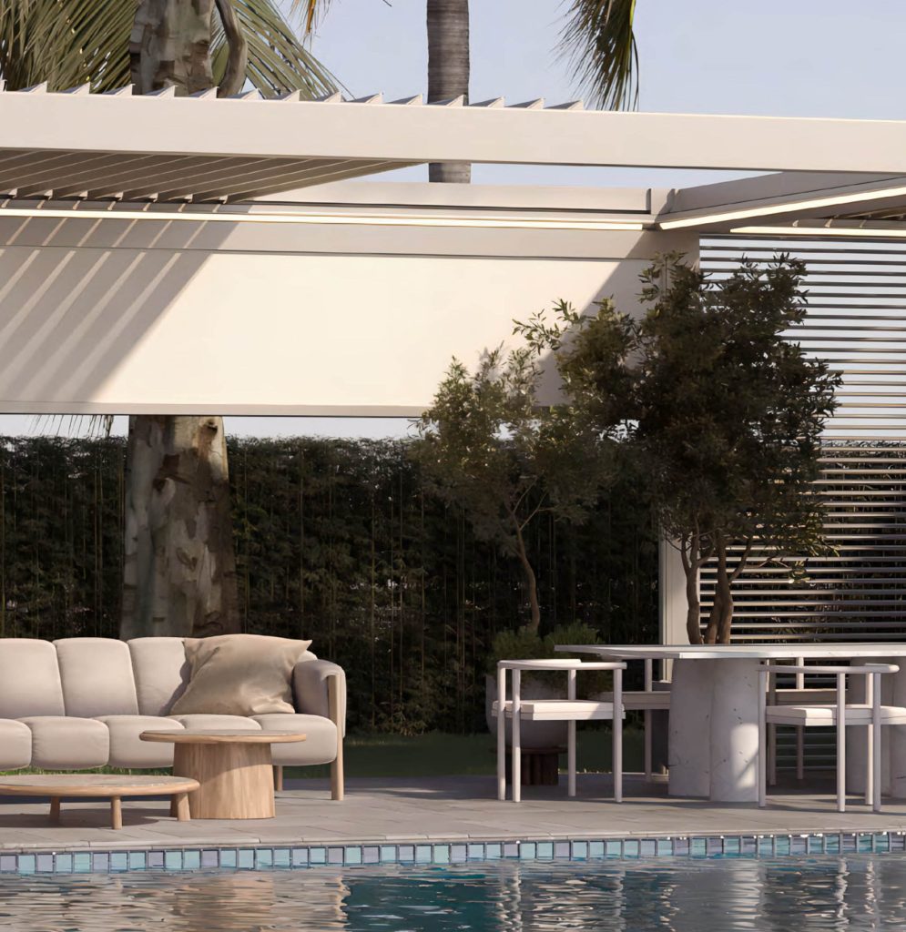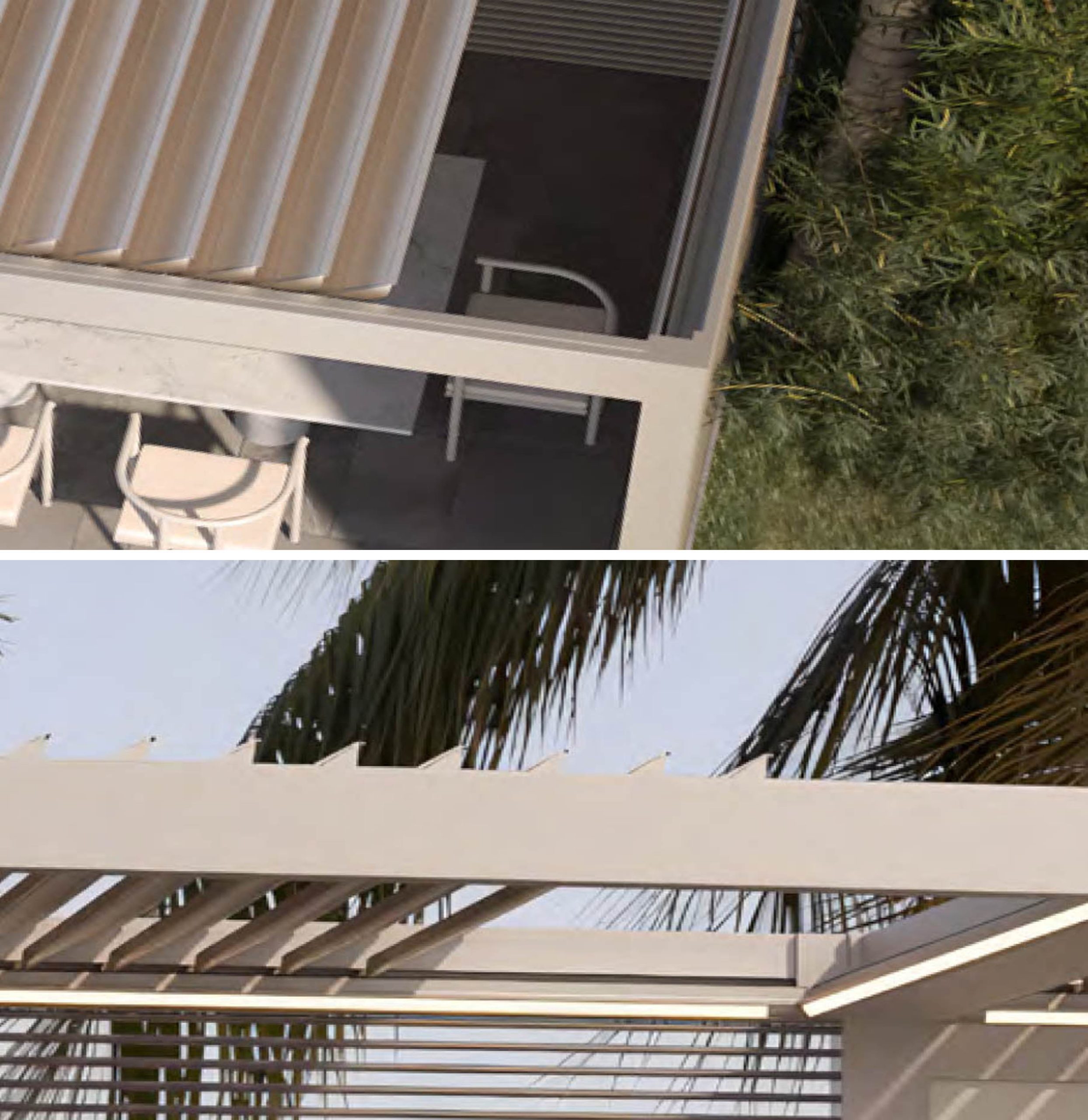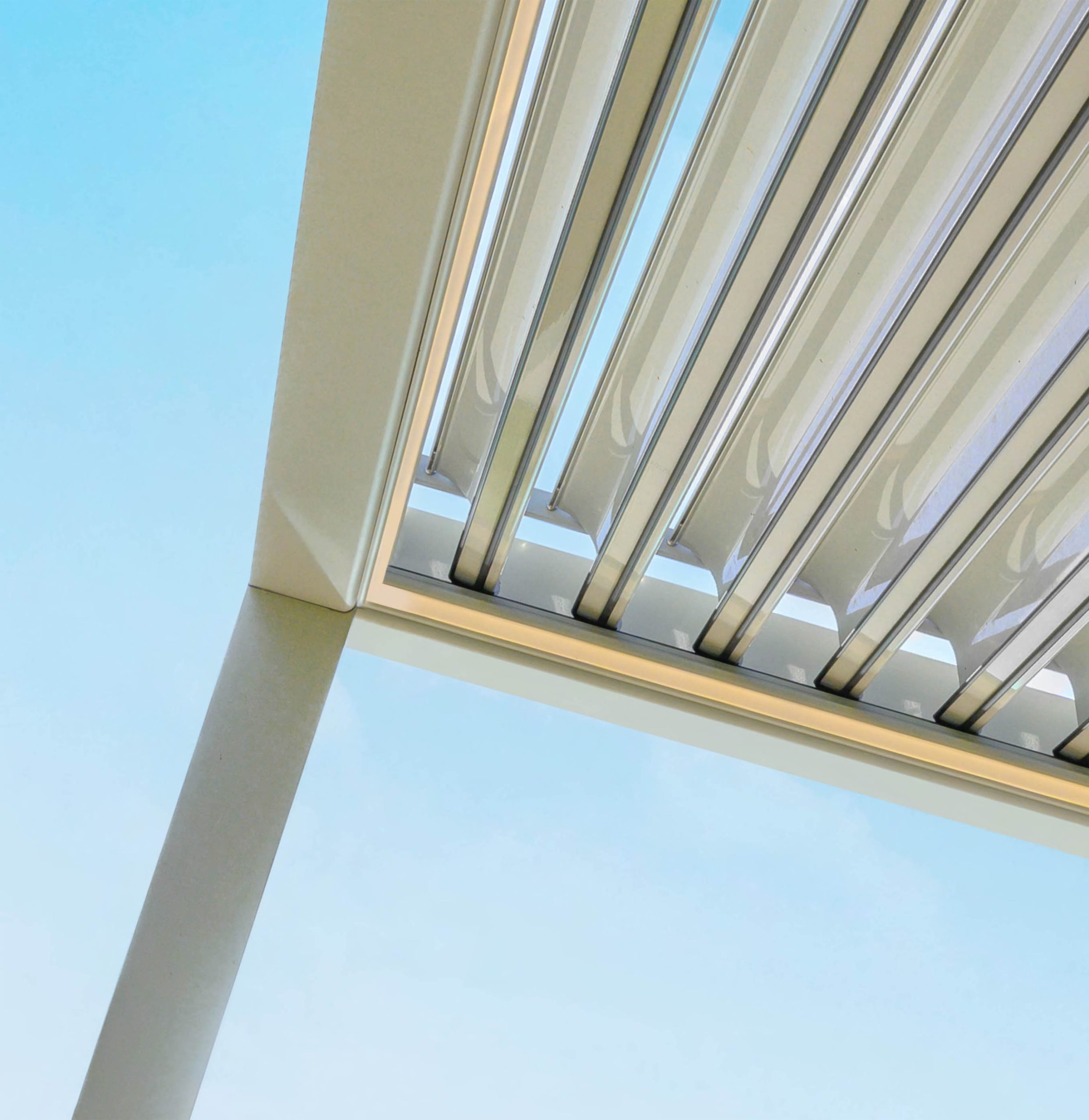 Retractable là hệ mái thông minh sử dụng các lam (louver) có thể xoay và/hoặc thu gọn, cho phép: