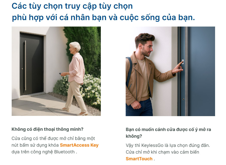 Khi người dùng đến gần cửa và chạm vào cảm biến, cửa sẽ tự động mở bằng KeylessGo.