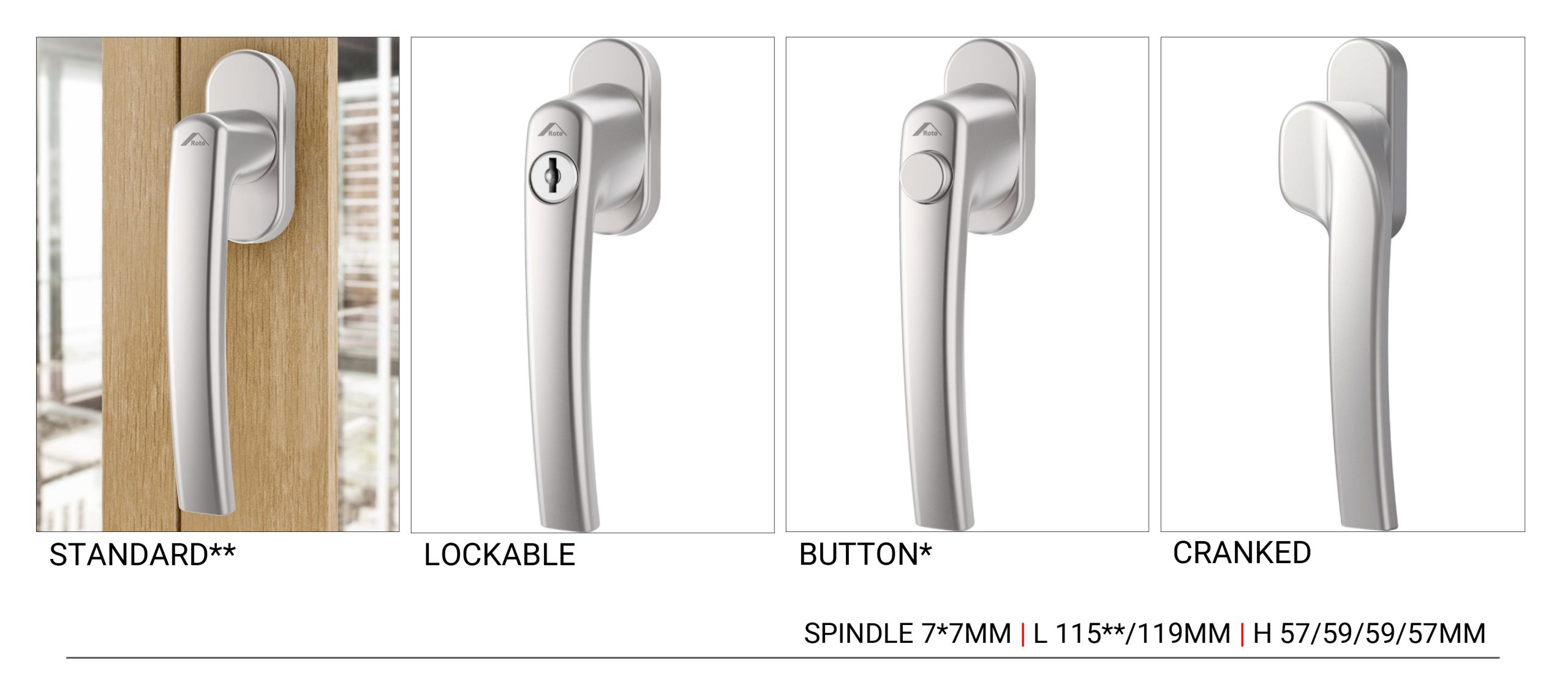 Đây là dòng tay nắm được sử dụng rộng rãi trong các hệ cửa châu Âu.
